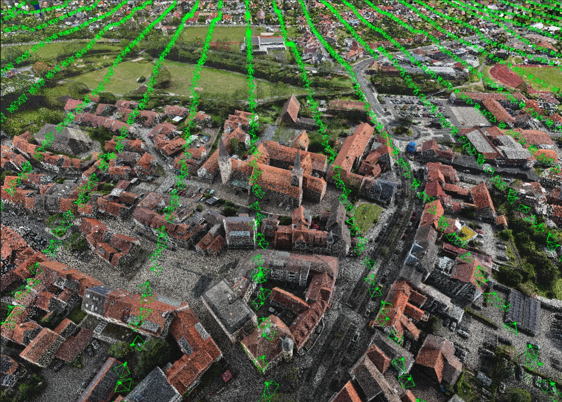 Durch die Kombination mit Drohnen-RTK-Systemen entstehen verlässliche Bodenpasspunkte, die Photogrammetrie- und LiDAR-Daten exakt verorten und so eine rechtsverbindliche Datengrundlage schaffen.
