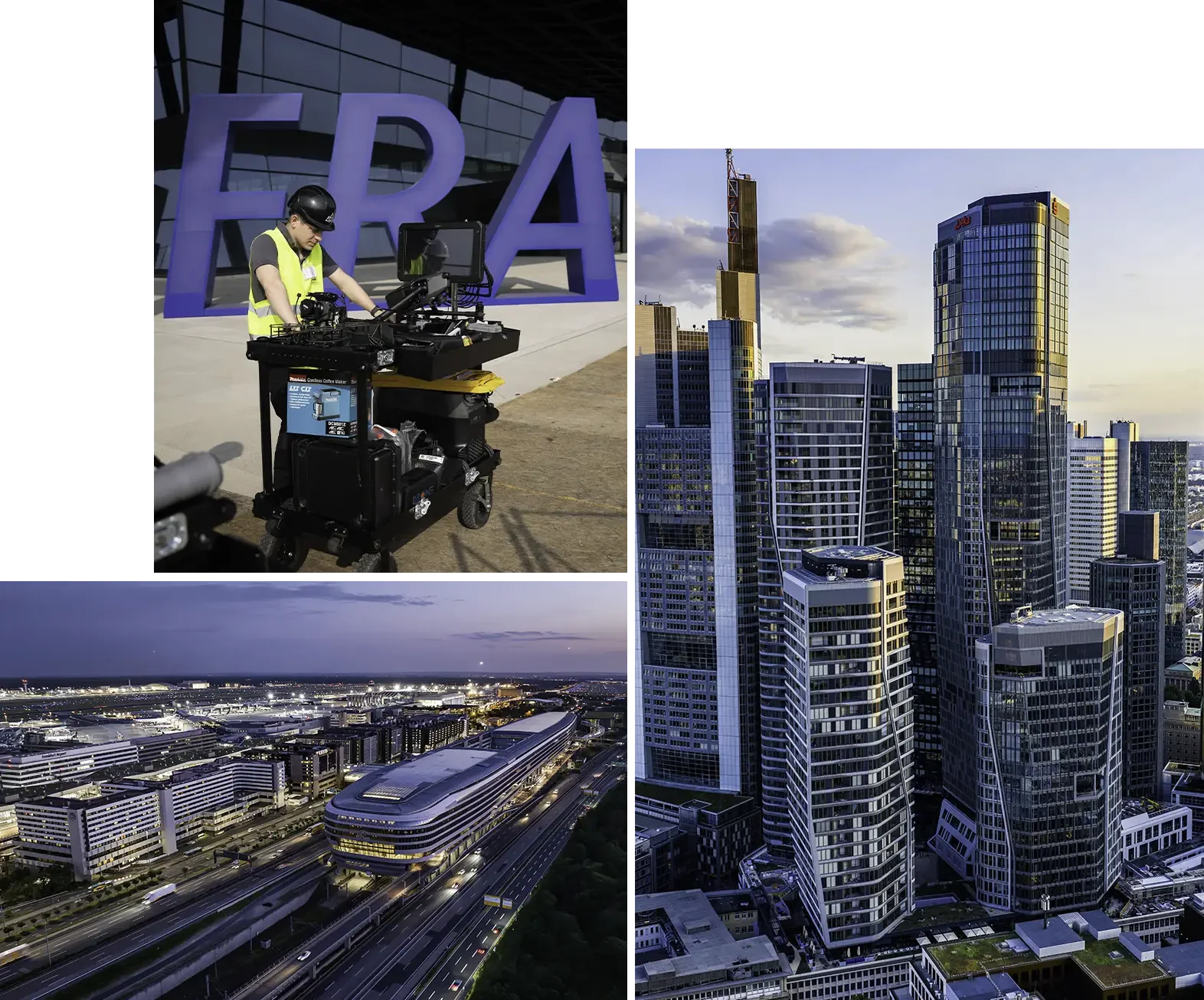 Als regional vernetztes Team kennen wir die Besonderheiten der Lufträume und Behördenprozesse im Rhein-Main-Gebiet genau: Wir wissen, wie man Einsätze direkt am größten Flughafen Deutschlands innerhalb der Kontrollzone und sogar innerhalb der Sperrzone mit der Flugsicherung plant und umsetzt – ein klarer Vorteil für jede Produktion.