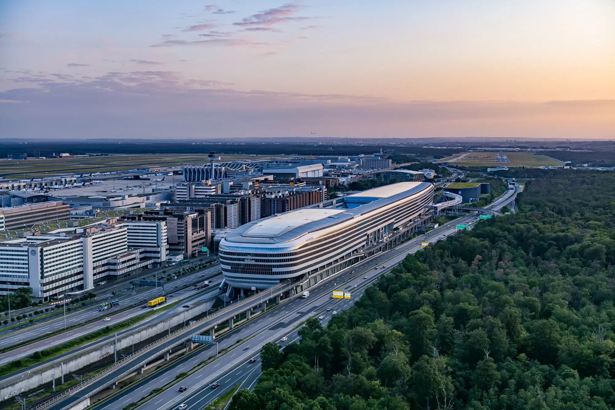 Die besondere Herausforderung: Die unmittelbare Nähe zum Flughafen und zur stark frequentierten A3 erfordert höchste Präzision und umfassende Sicherheitsmaßnahmen. Unsere Drohnen mussten dafür mit ADS-B Mode-S Transpondern ausgestattet werden und wir brauchten einen ausgebildeten Flugfunker inklusive Flugfunkgerät, um die strengen Auflagen der DFS (Deutsche Flugsicherung) zu erfüllen. Dank sorgfältiger Vorbereitung, enger Abstimmung mit den Behörden und professioneller Technik konnten wir spektakuläre Perspektiven einfangen, die das Gebäude in seiner ganzen Dimension zeigen.