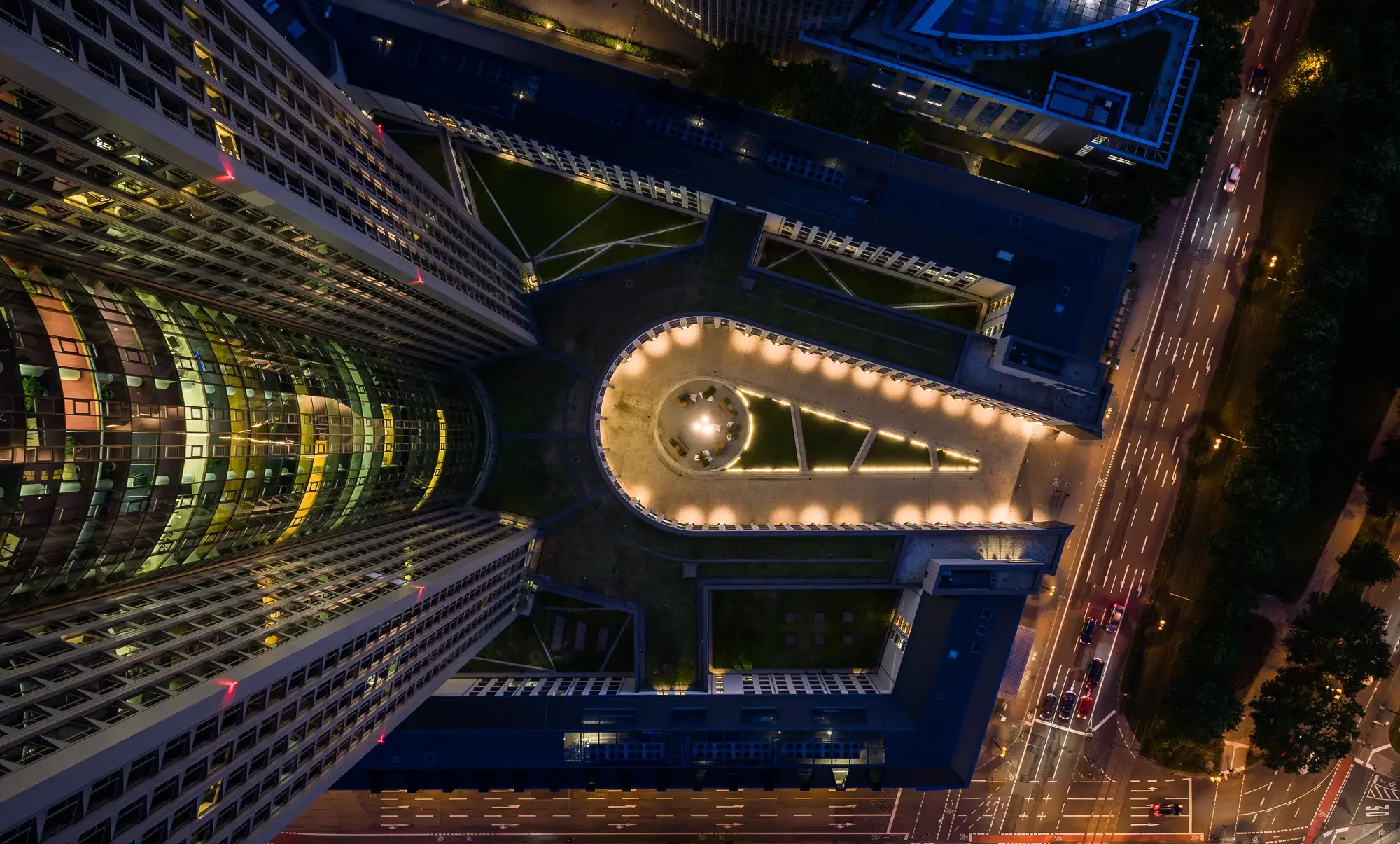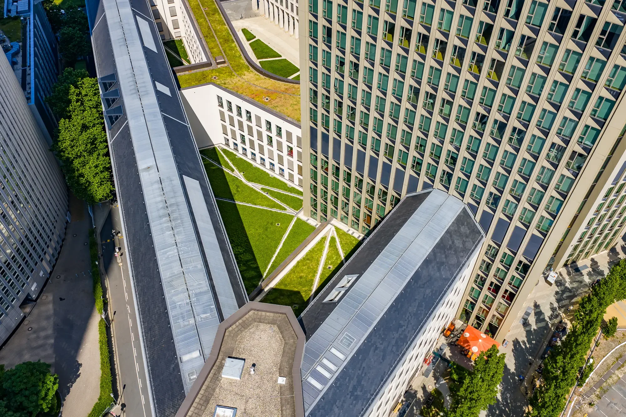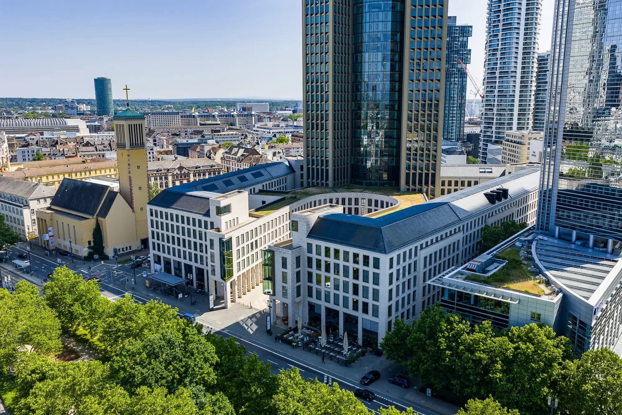 Die Aufgabe bestand darin, den Tower sowohl als eigenständige Architekturikone als auch in seinem städtebaulichen Kontext darzustellen. Besonders die Lage am Eingang zum Europaviertel und die unmittelbare Nähe zum Messegelände machen die Perspektiven aus der Luft einzigartig. Mit unseren Drohnen konnten wir eindrucksvoll zeigen, wie sich das Gebäude in das Frankfurter Hochhausensemble einfügt und zugleich seine prägnante Formensprache behauptet.